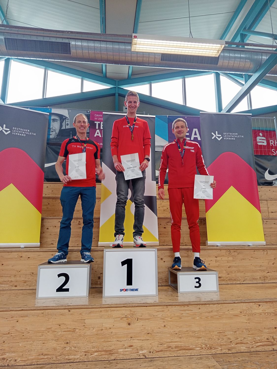 Am vergangenen Wochenende startete Patrick Reischle vom TSG Heilbronn bei den Deutschen Berglauf Meisterschaften in Breitungen/Werra (Thüringen). Die Bedingungen waren nicht ideal, da es vor dem Lauf stark geregnet hatte und die Strecke dadurch teils sehr matschig war. Auch musste ein kurzes Steilstück mit bis zu 40% Steigung zweimal durchlaufen werden. Allen Widrigkeiten zum Trotz absolvierte Patrick die 12,5km mit 750 positiven und 350 negativen Höhenmetern in 00:57:13 min. und konnte sich damit überraschend die Bronzemedaille in der Altersklasse M40 sichern. fhl