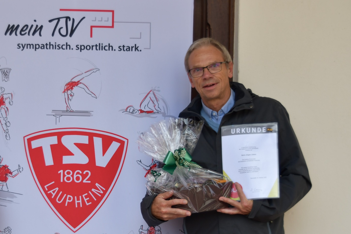 Für den TSV Laupheim beglückwünschten und bedankten sich der Präsident Hilmar Kopmann und Abteilungsleiter Jakob Rehberger. Jürgen Littwin förderte als langjähriger Trainer einer Leistungsgruppe junge Talente im TSV Laupheim und schaffte es mit fundiertem Fachwissen, Kreativität und Improvisationstalent immer wieder aufs Neue, bestmögliche Trainingsbedingungen zu schaffen. So setzte er sich für die Sanierung des Herrenmahd-Stadions ein. Er verfolgte hierbei zwei Ziele: Das neue Stadion sollte den Laupheimer Leichtathleten eine Heimat mit optimalen Möglichkeiten sein. Noch mehr aber sollte es eine Sportstätte werden, die – nach der Umbenennung der Anlage in „Gretel-Bergmann-Stadion“ – ihrer Namensgeberin würdig ist. In unzähligen Arbeitsstunden mit dem Leichtathletik-Team konnte Jürgen Littwin seine Erfahrung einbringen.