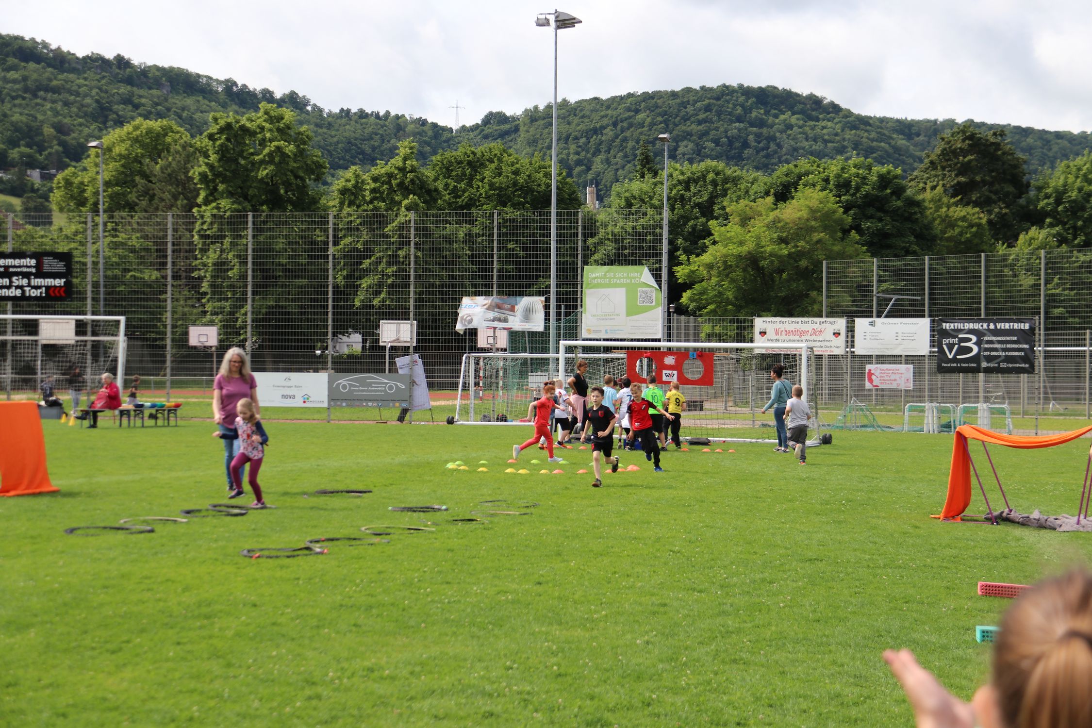 In Geislingen am 05.06. durften insgesamt 11 Klassen mit 250 Schüler:innen die acht Grundschule-trifft-Kinderleichtathletik-Stationen ausprobieren und neue Bewegungsformen kennenlernen. Die Kinder waren begeistert und motiviert und wurden zusätzlich durch die Topathletin der TG Geislingen angespornt. Lara Kneifel zeigte den Kindern, wie schnell man über die Hürden laufen kann, und wurde mit riesigem Applaus und lauten Jubel-Schreien belohnt.