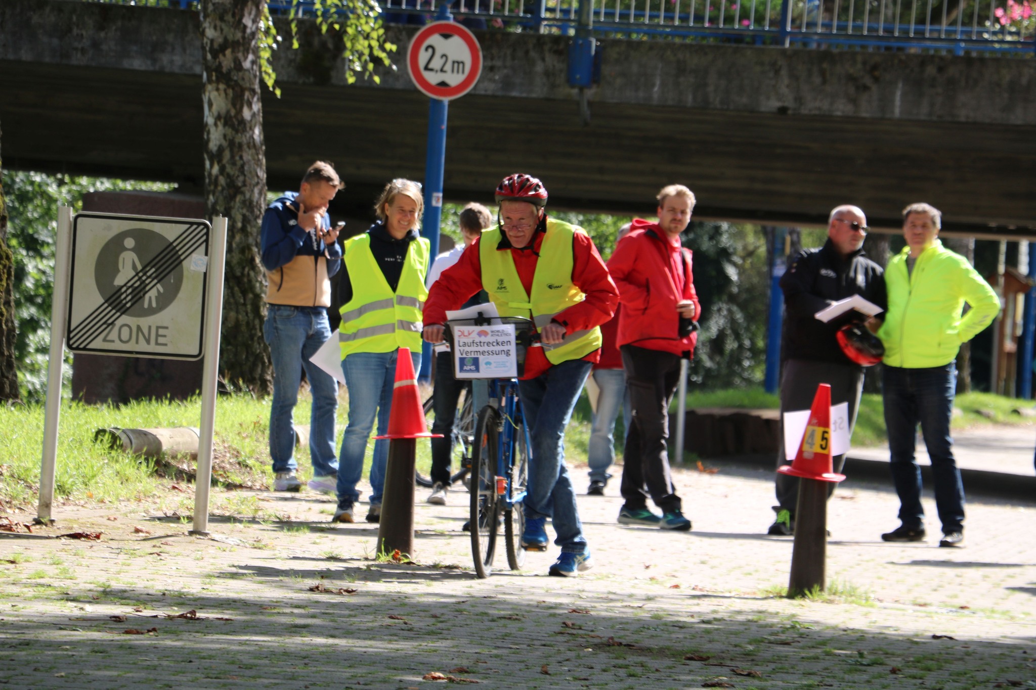 In Theorie und Praxis wurden die Grundlagen zur Durchführung von Streckenvermessungen und zur Erstellung von Vermessungsprotokollen für Laufveranstaltungen vermittelt. Neben der Montage des Jones-Counters, der als Messgerät dient, wurde in der Praxis eine Eichstrecke erstellt und eine erste Streckenvermessung durchgeführt.