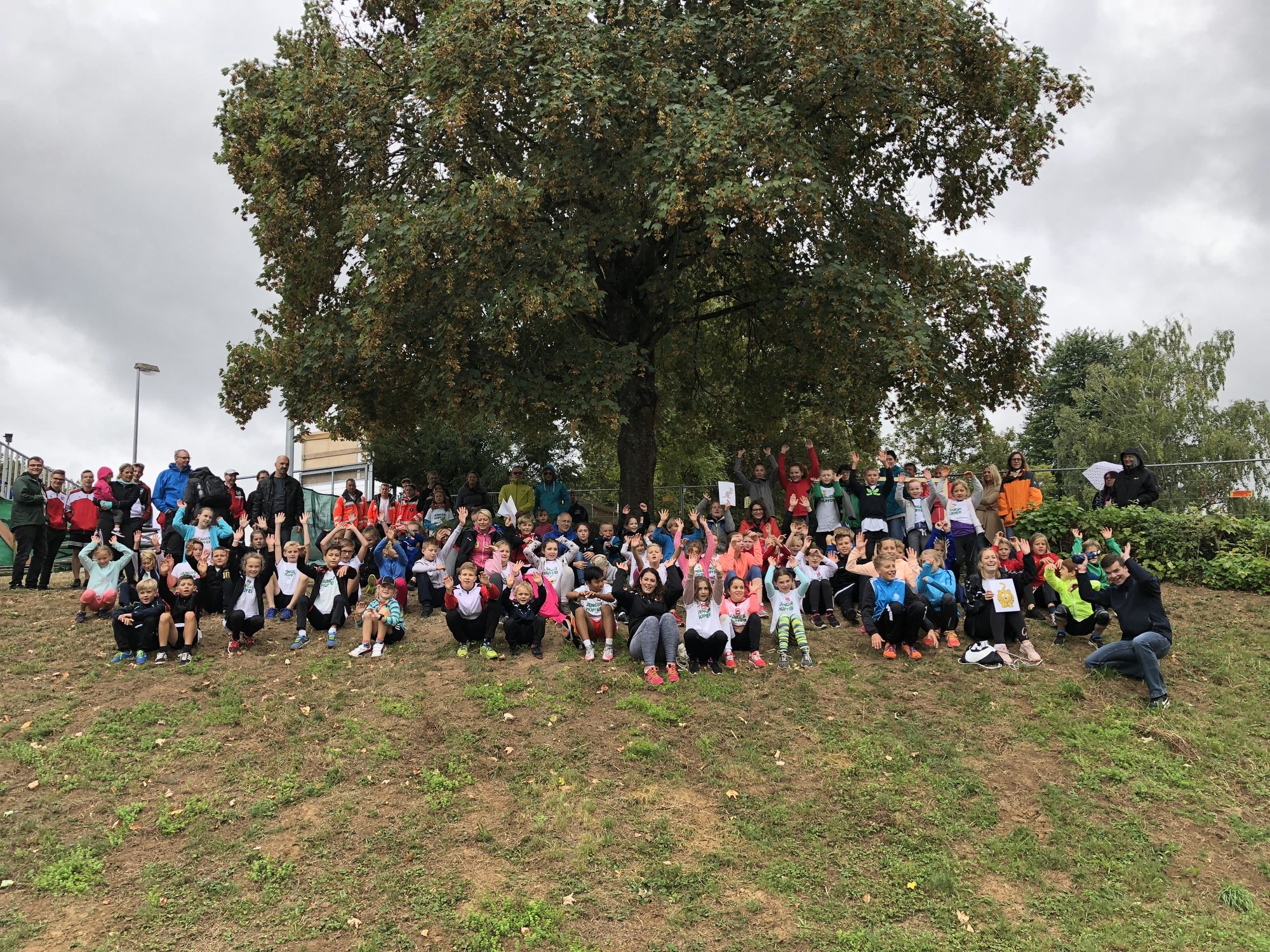 Zum Abschluss des Kinder- und Jugendtages gab es für alle Kinder- und Jugendlichen noch eine Abschlussstaffel bevor dann das traditionelle Gruppenfoto gemacht wurde. Zur Belohnung gab es für alle Teilnehmer eine Urkunden, kleine Präsente und die T-Shirts von der AOK durfte ebenfalls jeder behalten und hatte damit sogar am Nachmittag kostenfreien Eintritt zum Frauenwettkampf des Hochsprungmeetings, bei dem die Litauerin Airine Palsyte mit einem Sprung über 1,94m die Zuschauer in der EberfürstArena begeisterte.