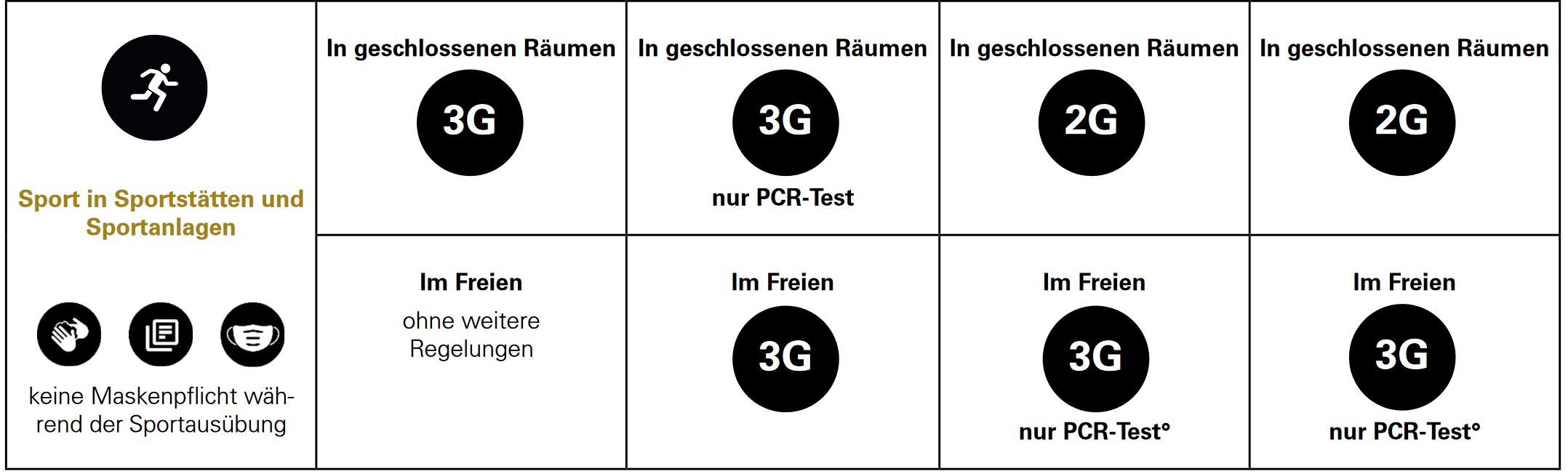 im Freien: 3G (nur PCR-Test)