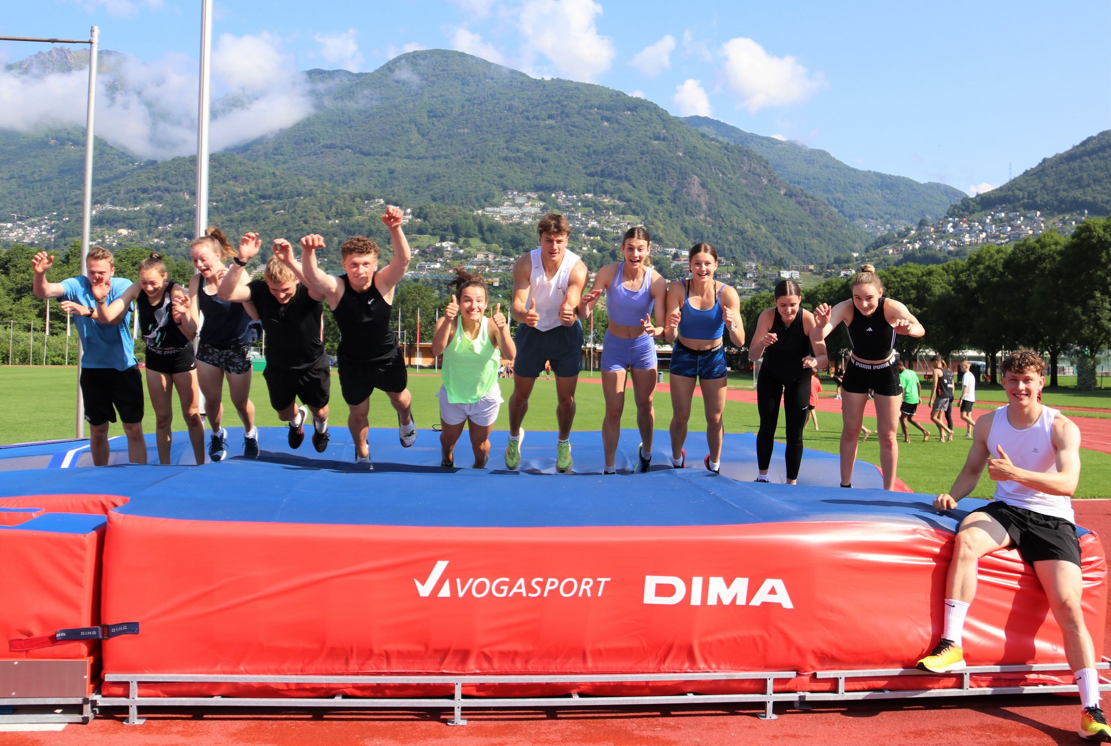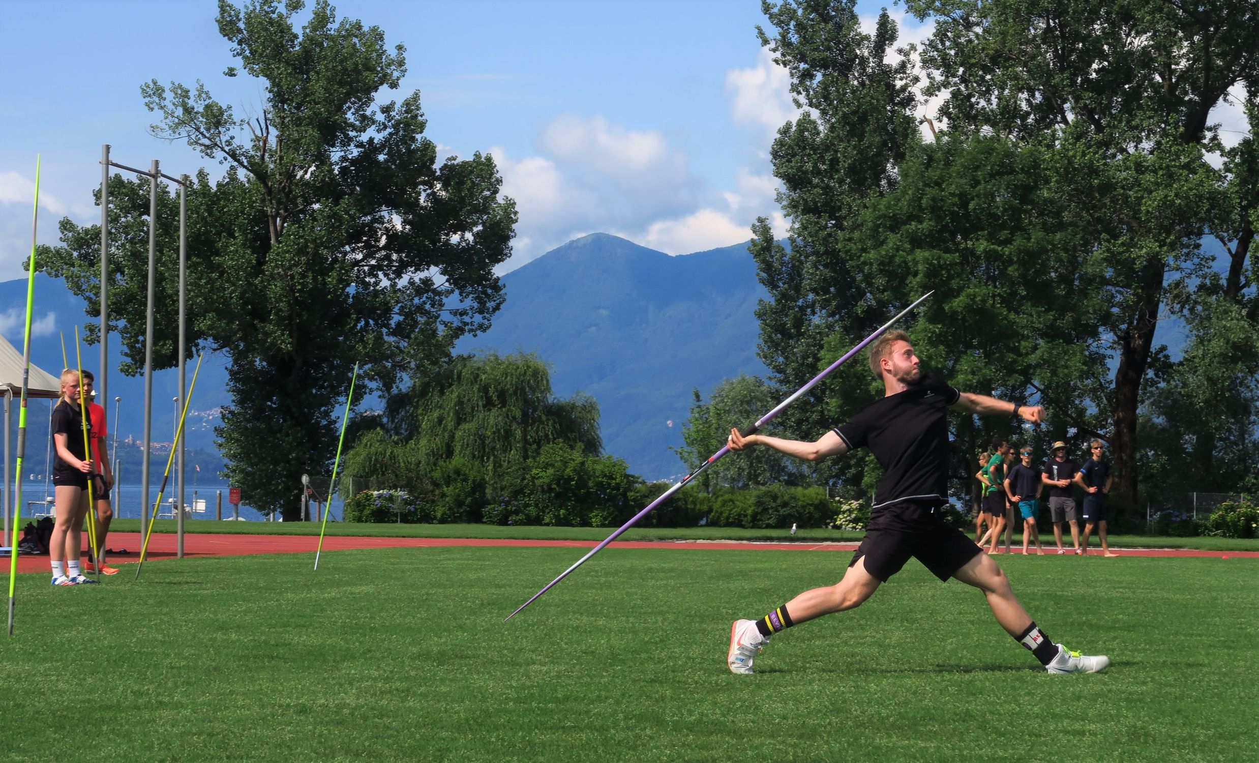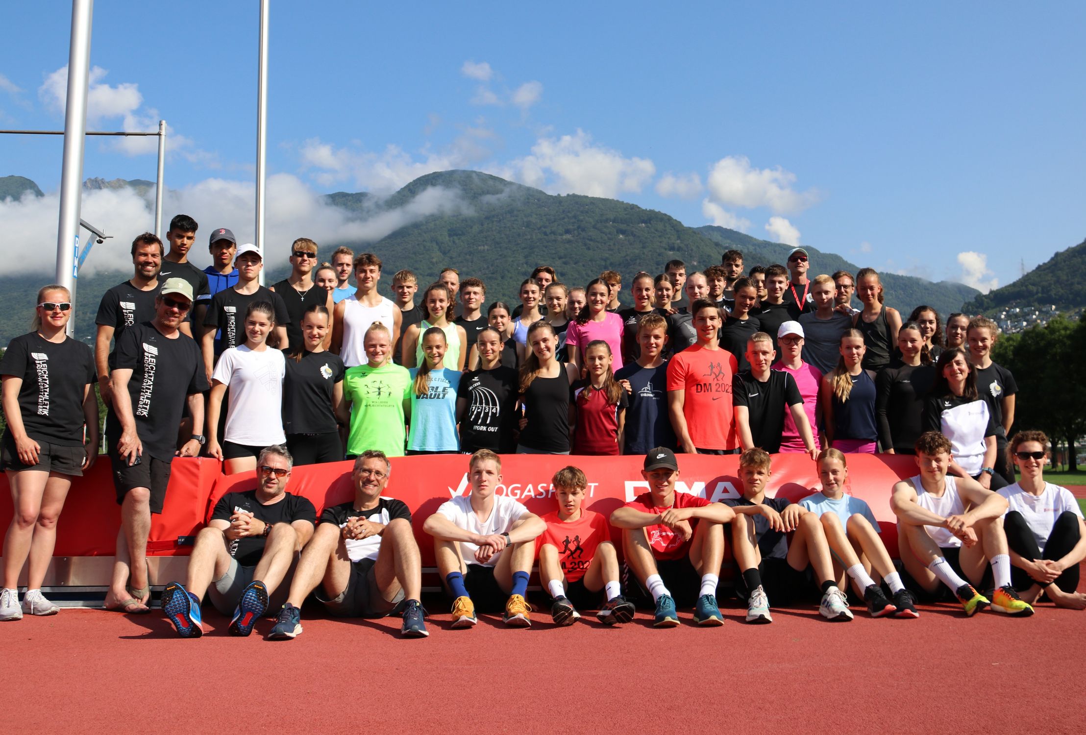 Die Sonne strahlte für die insgesamt fast 50 Athletinnen und Athleten jeden Tag auf das Sportzentrum am Ufer des Lago Maggiore. Das ein oder andere Gewitter sorgte abends und nachts für die nötige Abkühlung. So wurde in 6 bis 7 Trainingseinheiten eifrig an den konditionellen Grundlagen und insbesondere an der Technik gefeilt, um in Topform in die anstehenden Meisterschaften mit dem Höhepunkt der deutschen Meisterschaften in Stuttgart Ende Juli gehen zu können. So kümmerten sich Aleksandra Gacic und Sven Rees um den (Hürden)-Sprint, Jennifer Hartmann und Volker Zahn um die Sprünge, Christoph Thürkow um die Läufer:innen, Carolin Streipart mit zeitweiliger Unterstützung von Karsten Thumm um die Wurfdisziplinen und Florian Bauder um die große Mehrkampf-Gruppe. Dabei wurden auch mal Gruppen und Trainingsinhalte getauscht, so dass auf möglichst viele Wünsche eingegangen werden konnte. Ein kleiner Gradmesser für den aktuellen Leistungsstand war die Wiederholung eines Teils der Testübungen aus dem DLV-Landeskadertest, der im Oktober mit der gleichen Altersklasse durchgeführt wurde.