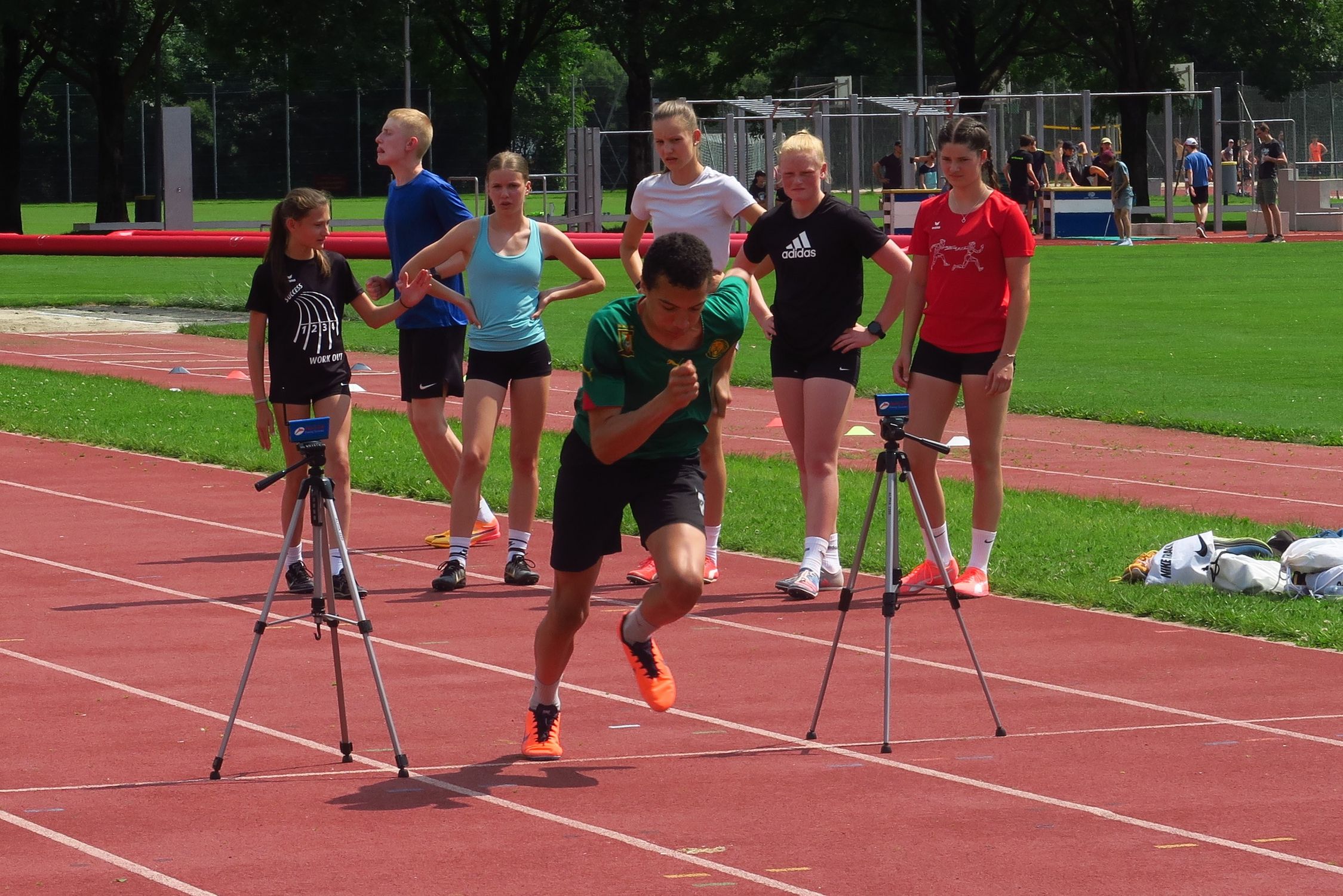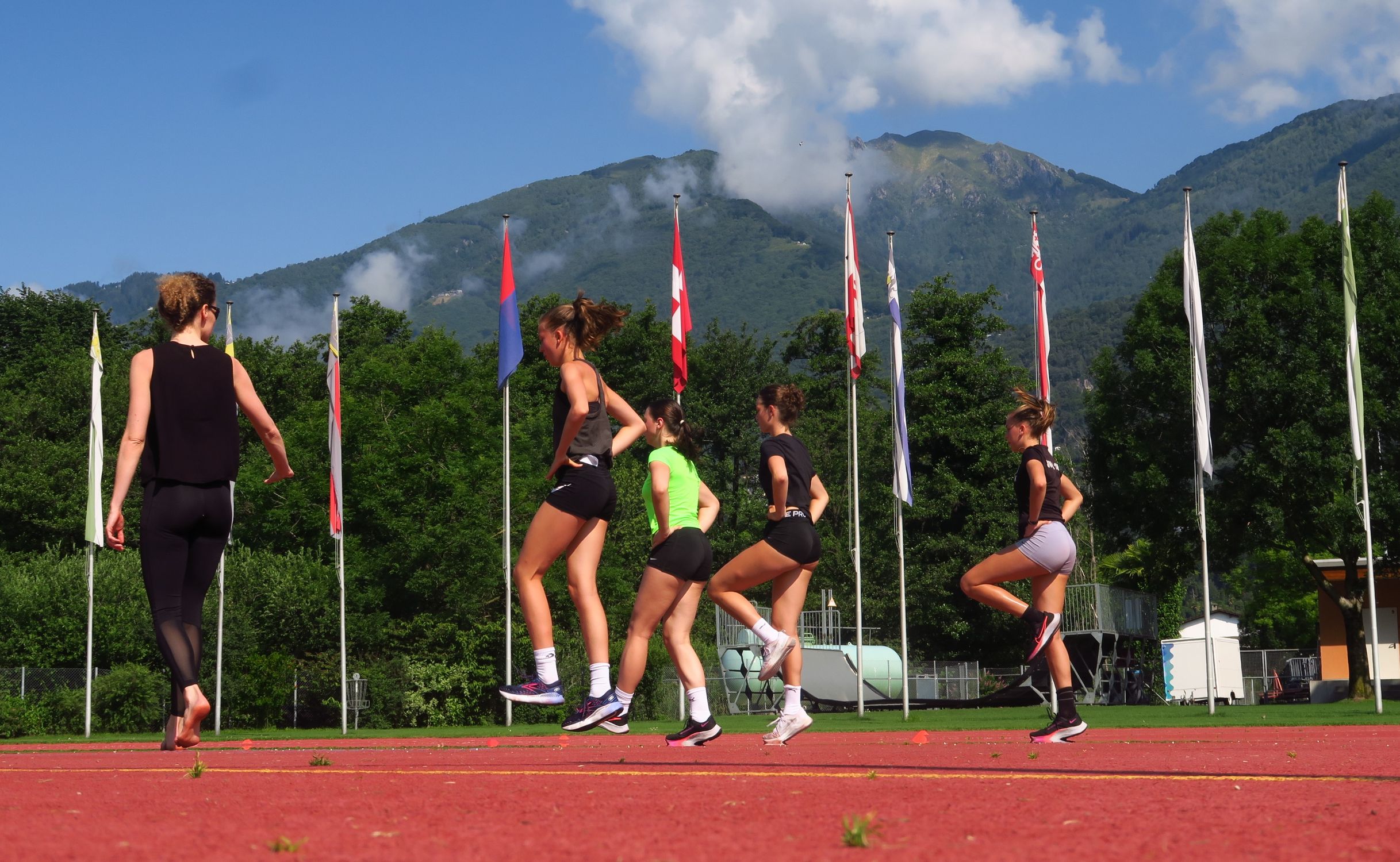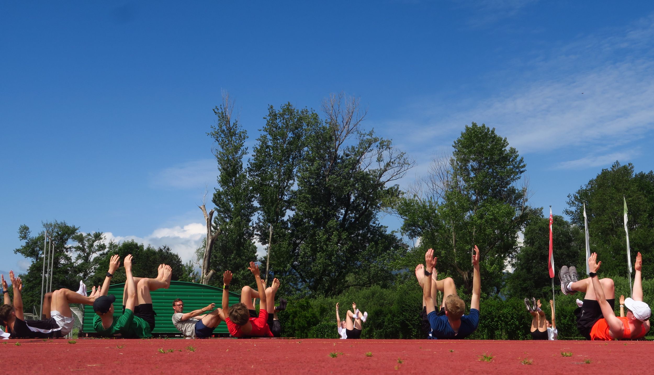 Die Sonne strahlte für die insgesamt fast 50 Athletinnen und Athleten jeden Tag auf das Sportzentrum am Ufer des Lago Maggiore. Das ein oder andere Gewitter sorgte abends und nachts für die nötige Abkühlung. So wurde in 6 bis 7 Trainingseinheiten eifrig an den konditionellen Grundlagen und insbesondere an der Technik gefeilt, um in Topform in die anstehenden Meisterschaften mit dem Höhepunkt der deutschen Meisterschaften in Stuttgart Ende Juli gehen zu können. So kümmerten sich Aleksandra Gacic und Sven Rees um den (Hürden)-Sprint, Jennifer Hartmann und Volker Zahn um die Sprünge, Christoph Thürkow um die Läufer:innen, Carolin Streipart mit zeitweiliger Unterstützung von Karsten Thumm um die Wurfdisziplinen und Florian Bauder um die große Mehrkampf-Gruppe. Dabei wurden auch mal Gruppen und Trainingsinhalte getauscht, so dass auf möglichst viele Wünsche eingegangen werden konnte. Ein kleiner Gradmesser für den aktuellen Leistungsstand war die Wiederholung eines Teils der Testübungen aus dem DLV-Landeskadertest, der im Oktober mit der gleichen Altersklasse durchgeführt wurde.