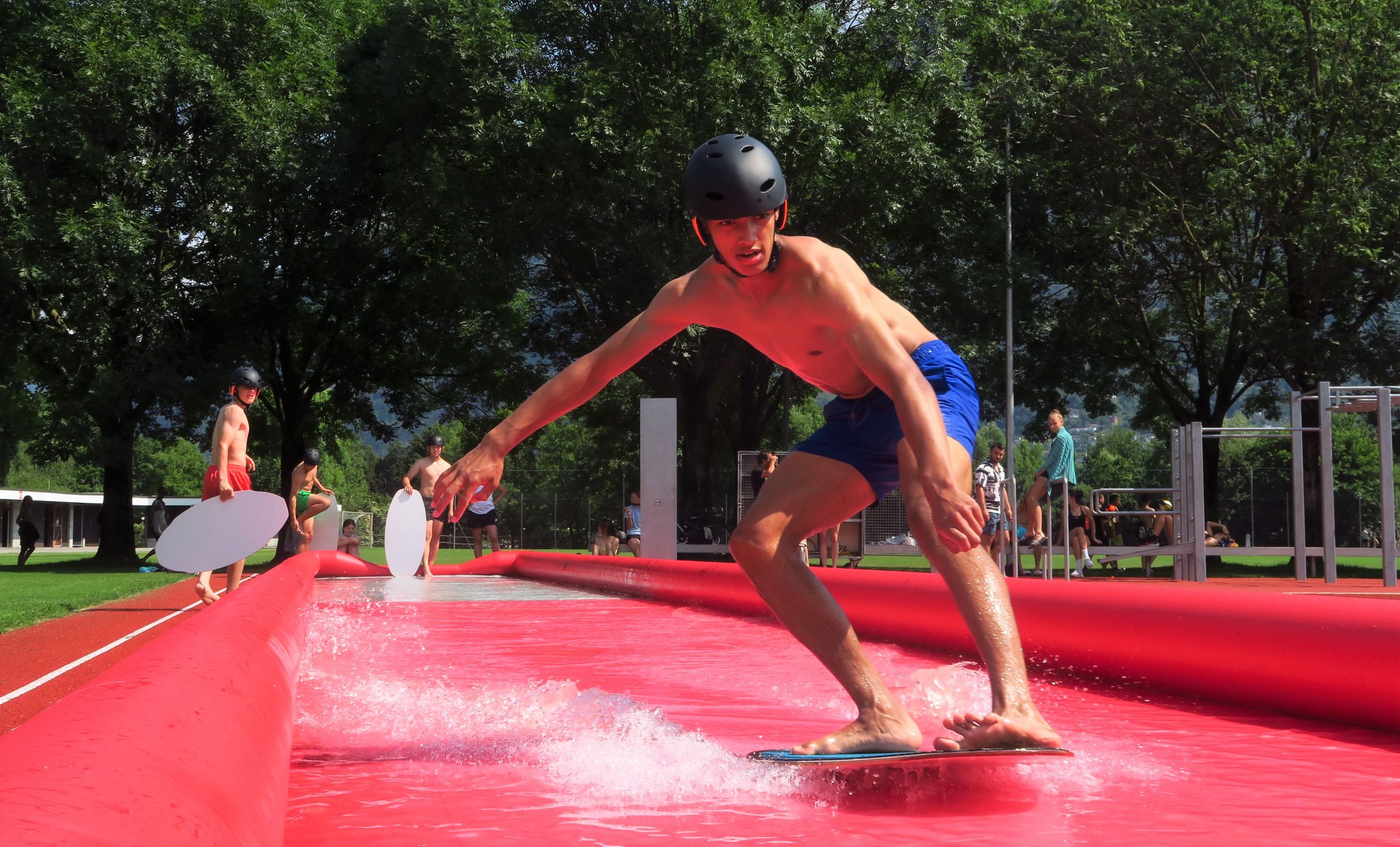 Mit von der Partie war auch wieder eine Gruppe des LAZ Ludwigsburg unter Regie von Marko Lindner. Weitere sportliche Aktivitäten, wie Tennis, Beach-Volleyball, Trampolinspringen, Skimboard, Kajak oder Turmspringen, rundeten das Programm auf dem CST ab.